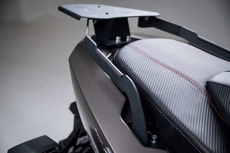 Διαθέτει αυτόματο σύστημα ανοίγματος / αφαίρεσης: το επάνω κουμπί επιτρέπει το άνοιγμα της βαλίτσας, ενώ το κάτω κουμπί απασφαλίζει από την πιάστρα της μοτοσικλέτας.